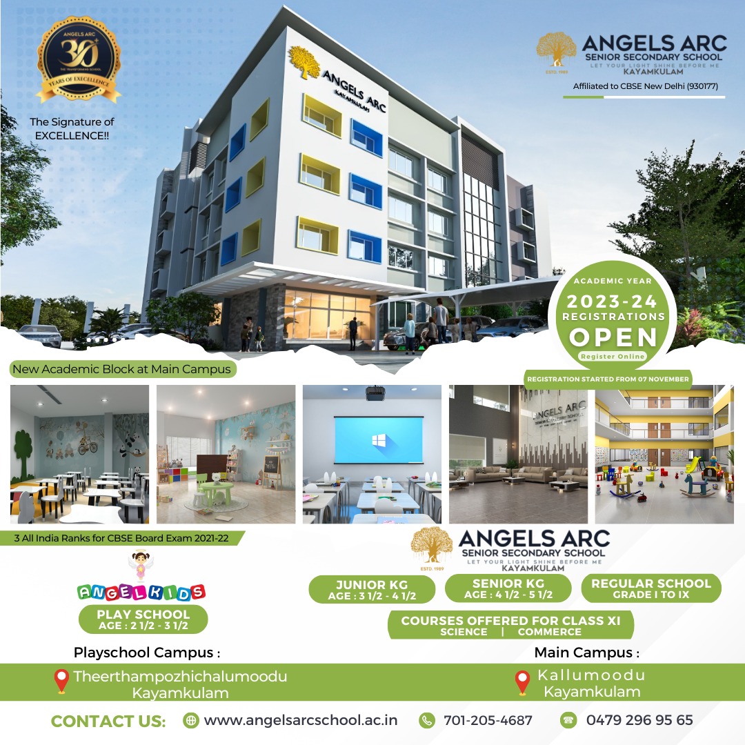 Affiliated to CBSE New Delhi (930177) | Senior Secondary Level | 04792969565 +9947719565 7012054687(Admission) angelsarcschool@gmail.com